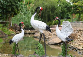 仿真動(dòng)物玻璃鋼雕塑裝飾池塘邊上丹頂鶴