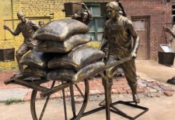 搬麻袋的工人,玻璃鋼仿銅民俗生活人物情景雕塑