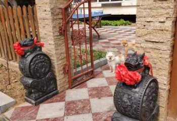 雕刻精美的大理石門口抱鼓雕塑