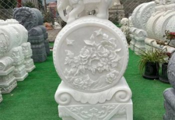 古典精美大理石浮雕鯉魚吉祥圓形抱鼓石