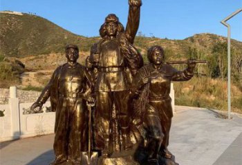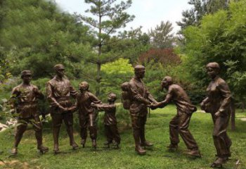 玻璃鋼仿銅八路軍慰問(wèn)農(nóng)民的情景小品